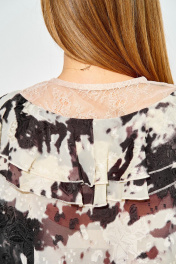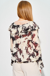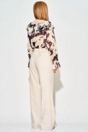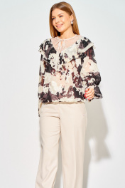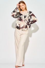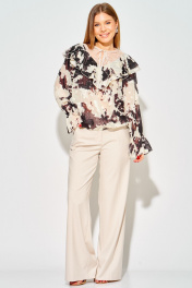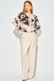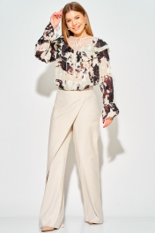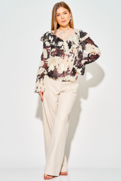 Нарядная блуза от LAIKONY свободного силуэта из шифона. Блуза длиной до линии бедер с центральной застёжкой на декоративную тесьму-молнию. Вырез горловины блузки «под горло», обработан планкой. Деталь переда и спинки с кокеткой из отделочной ткани, в шов вставлены два волана. Деталь переда кокетки со средним швом, с разрезом и по горловине вставлена тесьма-шнур. Рукава втачные одношовные, понизу собраны на эластичную тесьму. В низ блузки вставлена эластичная тесьма. Длина изделия по спинке 61 см длина рукава 64 см. Наша блуза составит нарядный образ с брюками L-942-2 (на фоото) - и вы будете блистать на любом торжественном мероприятии.