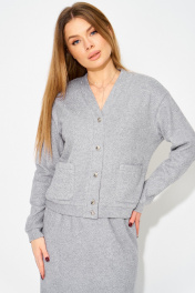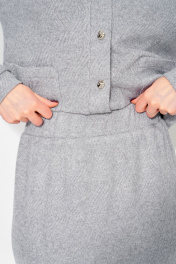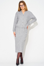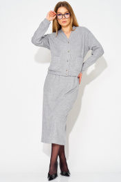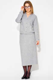 Трикотажный юбочный комплект от LAIKONY свободного силуэта. Джемпер длиной до линии бедер, застежка центральная на 4 петли и пуговицы. Вырез горловины V-образный, на деталях переда накладные карманы. Рукава втачные одношовные, с притачными манжетами. Линия плеча спущена. По низу джемпера, по краю борта и горловине - притачная планка. Юбка прямого силуэта, на подкладке, длиной до колена. Пояс притачной, в пояс вставлена эластичная тесьма. Заднее полотнище юбки со средним швом, внизу шва обработан разрез. Декор может отличаться от представленного на фотографии. Ткань - трикотаж средней плотности, хорошо тянется. Комфортный офисный костюм для повседневного использования.