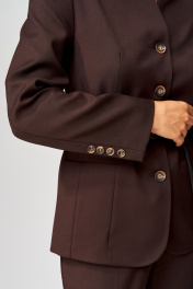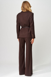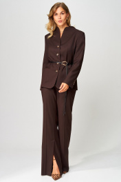 Ультрамодный деловой костюм от LAIKONY, состоящий из жакета и брюк. Жакет полуприлегающего силуэта с центральной застежкой на 4 петли и 4 пуговицы. Вырез горловины жакета фигурной формы. Детали переда жакета с отрезными бочками и вертикальными нагрудными вытачками. Карманы горизонтальные прорезные с листочками с втачными концами. Деталь спинки жакета со средним швом, отрезными бочками и рельефными швами. Рукава втачные двухшовные, по локтевым швам вставлена планка, по низу декоративно прикреплены по 4 пуговицы. Жакет с притачной понизу подкладкой. Съемный пояс в комплекте. Длина жакета по спинке 69-70 см, длина рукава 60-61 см. в зависимости от размера. Брюки на бедрах, плотно облегающие вверху и расширенные к низу. Пояс притачной, по спинке пояса вставлена эластичная тесьма. Застежка на тесьму-молнию, 1 потайной крючок и 1 потайную петлю и пуговицу. В боковых швах обработаны наклонные карманы, на передних и задних половинках брюк обработаны вытачки и заутюжены «канты». Внизу шаговых швов обработаны шлицы. На поясе прикреплены 5 шлёвок. Длина блюк по боковому шву 108 см. Декор может отличаться от представленного на фотографии. Наш модный костюм идеально подойдет для деловой встречи и других торжественных мероприятий.