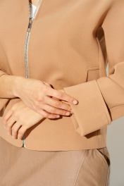 Жакет LAIKONY свободного силуэта на подкладке длиной до линии бедер. Застежка центральная на металлическую тесьму-молнию. Вырез горловины «под горло», с втачной стойкой. Детали переда с отрезными бочками, в швах обработаны карманы. Спинка жакета со средним швом. Рукава цельнокроеные длиной 3/4, низ обработан обтачкой. Рукава с незакрепленным отворотом, который, при необходимости, можно отвернуть. Жакет на подкладке. Жакет выполнен из костюмной ткани. Декор может отличаться от представленного на фотографии. Длина изделия по спинке 55-56,5 см в зависимости от размера, длина рукава 70-70,5 см в отвернутом виде. Наш жакет вы можете носить весной вместо куртки. Вместе с юбкой из экокожи L-924 (на фото) или брюками L-942-2 составит стильный образ как для офиса, так и повседневного использования.
