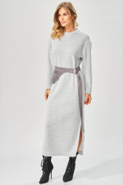 Трикотажное платье от LAIKONY прямого силуэта длиной макси. Вырез горловины округлой формы с втачной бейкой. Перед и спинка цельные. Рукава втачные одношовные длинные, линия плеча спущена. В левом боковом шве обработан разрез. В комплекте съемный пояс с застежкой на пряжку. На съемном поясе обработан карман с листочкой с втачными концами. Трикотаж средней плотности, хорошо тянется. Декор может отличаться от представленного на фотографии. Длина изделия по спинке 134 см, длина рукава 53 см от шва втачивания. Уютное стильное повседневное платье длиной ""в пол"" с оригинальным поясом для осенне-зимнего сезона.