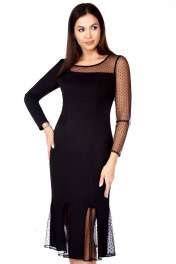 Платье миди в стиле нарядное с асимметрией и прозрачным топом LaKona 11542 черный