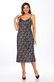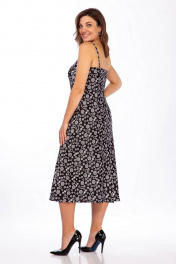 Черное платье Миди с атласным блеском и крой «по-косой» LaKona 1445 черно-белый_в_горох