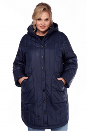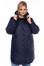 Комфортное пальто прямого силуэта выполнено из стеганой плащевки на синтепоне, пальто полностью на подкладке "Гранд". По горловине-высокая стойка на 2 кнопках, переходящая в капюшон, который стягивается шнуром, продетым сквозь блочки. Впереди застежка на кнопки, оригинальные большие накладные карманы со входом сквозь листочку. Низ пальто с закругленными краями к боковым швам. Линия плеча приспущена, рукав длинный, с отворотом, регулирующим длину.