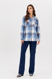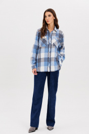 Стильный комплект, состоящий из свободной рубашки принт: клетка с планками по бокам, накладными карманами и свободных брюк из фактурной ткани, имитирующий вельвет. Блуза рубашечного покроя с втачным одношовным рукавом с манжетой. Спинка состоит из горизонтальной кокетки и основной детали, на которой расположены две складки для свободы движения. На полочке изделия: два кармана прямоугольной формы. Линия низа: фигурная. Рукав втачной, одношовный, с притачной манжетой, высотой 5,5 см и вертикальной планкой: застежкой для петли/ пуговицы. Высота планки 11 см. Длина рукава в готовом виде 61 см. По бокам блузы расположены декоративно-функциональные планки с застежкой петли/пуговицы. Горловина оформлена стойкой и рубашечным воротником. Застежка вертикальная на планках петли/пуговицы. Длина блузы по спинке 74-76 см (в зависимости от размерного ряда). Брюки свободного прямого силуэта, к низу имеют незначительное расширение. В боковых швах: карманы с наклонным входом. Пояс притачной с эластичной тесьмой внутри и шнуром, для дополнительной фиксации талии. Высота пояса 4 см. Длина брюк по боковому шву 102 см. (фурнитура может отличаться от представленной на рекламном фотоматериале) Особые рекомендации: рекомендуется холодная деликатная ручная стирка, без использования отбеливающих СМС, без интенсивного трения. Сушка в вертикальном положении. ВТО с минимальным паром.