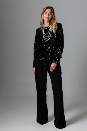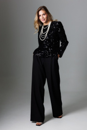 Элегантный брючный комплект из жакета с пайетками и палаццо Ларс Стиль 1019