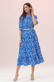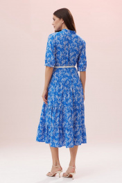 Легкое, воздушное, летнее платье состоит из отрезного удлиненного лифа и юбки, состоящей из трех горизонтальных воланов со сборкой. Спереди лиф платья имеет нагрудные горизонтальные вытачки и вертикальную функциональную планку-застежку на петли-пуговицы. Горловина обработана воротником-стойкой. Рукав втачной, одношовный. Низ рукава с лаконичной сборкой, на манжете с застежкой. Длина рукава 34 см. Длина платья по спинке 121 см. Платье дополнено ремнем, который по желанию подчеркнет изящество фигуры. *фурнитура может отличаться от представленной на рекламном фотоматериале. Особые рекомендации: рекомендуется холодная деликатная ручная стирка, без использования отбеливающих СМС, без интенсивного трения. Сушка в вертикальном положении. ВТО с минимальным паром.