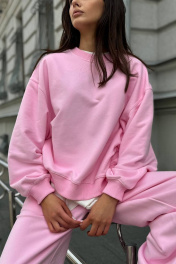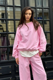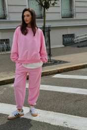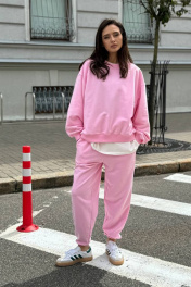Розовые спортивные брюки из футера с велюром LECIEL TR05