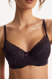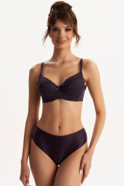 Бюстгальтер из эластичного кружева и эластичного трикотажного полотна на среднюю размерную группу. Чашка выполнена из дубляжа, присутствуют каркасы («косточки»).