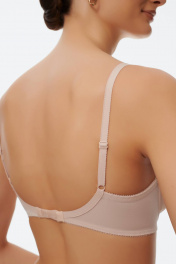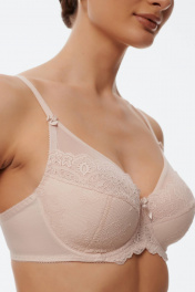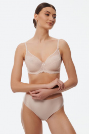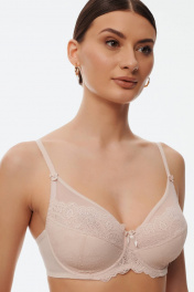 Бюстгальтер с глубокой чашкой из тонкого поролона, декорированный кружевом и тонкой эластичной сеткой. Воплощение изящества и комфорта, обеспечивающие отличную поддержку. В модели присутствуют каркасы («косточки»).