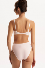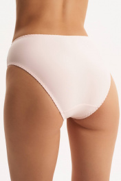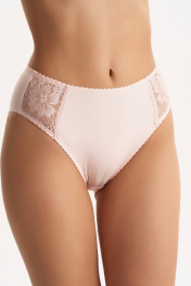 Полноразмерные трусы слипы с высокой линией талии (закрывают пупок), выполненные из эластичного трикотажного полотна (микрофибра) и декорированные вставками из кружева по бокам. Подкладка ластовицы из 100% х/б.