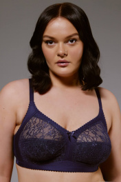 Бюстгальтер бескаркасный, декорированный кружевом по всей чашке, внутри чашки - вставка из хлопка, которая приятна к телу и не вызовет раздражения. Боковая деталь, широкие бретели и бочки обеспечивают отличную поддержку, а также равномерно распределяют вес груди, что крайне важно, особенно при очень больших размерах. Модель идеально подойдёт для повседневной носки.