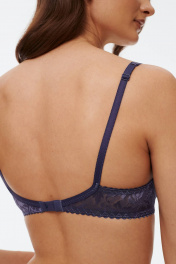 Бюстгальтер с формованной чашкой (эффект двойного «пуш-ап») на косточках, которые усиливают поддержку, приподнимая грудь, делая ее более полной и округлой. Выполнен полностью из эластичного трикотажного полотна. В качестве декоративного элемента присутствует маленький бантик спереди по центру изделия.