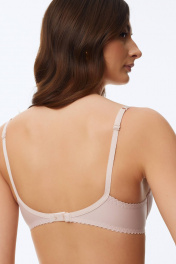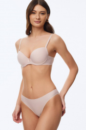 Базовый гладкий бюстгальтер с формованной чашкой (эффект двойного «пуш-ап»). В конструкции присутствуют каркасы ("косточки"). Бочки гладкие. Бретели регулируются по длине, но не отстегиваются.