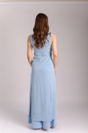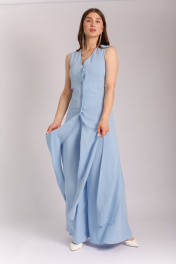 Женский удлиненный жилет на пуговицах. Жилет-платье прекрасен как самостоятельная единица гардероба, но достигает своего совершенства в сочетании с брюками палаццо из аналогичной ткани и является частью лаконичной капсульной коллекции, которая подойдет и в пир и в мир. Яркий, запоминающийся своим оригинальным кроем и хорошей посадкой платье-жилет выполнен из премиального стуящегося качественного материала нового поколения, который обеспечивает комфорт, эстетичный внешний вид и легкость в уходе за изделием. Благодаря современному дизайну жилетка создаст гармоничный и стильный образ, который будет уместен в любом месте и в любое время, а также сможет подчеркнуть красоту Вашей фигуры, не создавая при этом дискомфорта при носке. С помощью универсальной безрукавки Вы сможете создать классический офисный образ, который будет актуален в жаркие летние дни. Жилетка - жакет уместна в повседневных образах для прогулок по городу, вечерних встреч и будет классно выглядеть на фотосъемке. Удлиненный жилет на пуговицах имеет рельефы по переду и спинке, которые переходят в 4 разреза, которые создают волшебный, легкий образ и прекрасно корректируют, вытягивают и стройнят фигуру. Вы будете выглядеть в нем великолепно и получите море комплиментов и восхищенных взглядов в свой адрес! Длина изделия - 140 см.