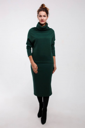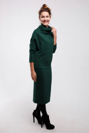 Элегантный костюм с юбкой и джемпером из вискозы и трикотажа Legend Style K-005 темно-зеленый