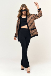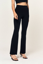 Эластичные леггинсы клёш, на широком поясе с резинкой. Выполнены из утепленной ткани в рубчик.