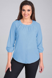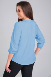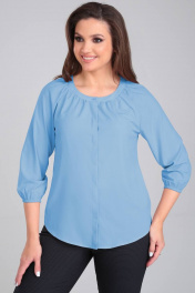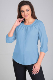 Деловая блуза из шифона с круглым воротником и сборкой LeNata 12104 голубой