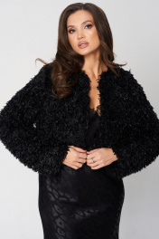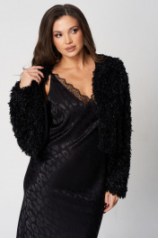 Жакет на подкладке, укороченный, прямого силуэта. Рукав длинный. Застежка на потайной крючек.
