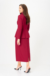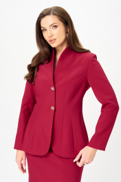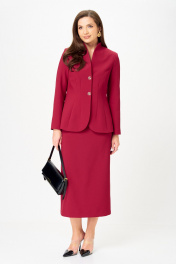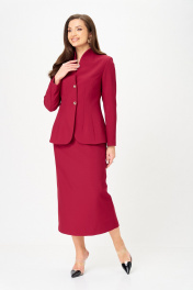 Комплект состоит из жакета и юбки и изготовлен из костюмной ткани. Жакет приталенный, на подкладке, с цельнокроеной стойкой. По спинке средний шов и талиевые выточки. Вырез V-образный, переходящий в цельнокроеную стойку, рукав втачной, двухшовный. Застёжка на декоративные пуговицы ( в р. 44-48- 2 пуговицы, в р. 50-54 – 3 пуговицы). Юбка прямого силуэта длиной миди на подкладке. По заднему полотнищу средний шов и шлица. Юбка на притачном фигурном поясе. Застежка на потайную тесьму-молнию в среднем шве заднего полотнища юбки. Этот стильный юбочный костюм ассоциируется с изяществом, аристократизмом и утонченностью. Элегантный стиль, позволяющий женщинам любого возраста оставаться обаятельными и женственными, будет актуален всегда.