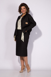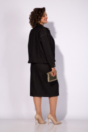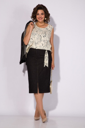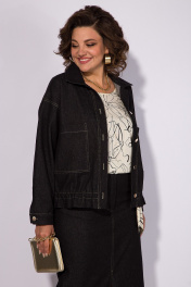 Стильный джинсовый юбочный костюм 3-ка, состоящий из жакета силуэта оверсайз, юбки и топа. Юбка и жакет выполнены из хлопкового «Джинса». Жакет со спущенной линией плеча, длинным рукавом на притачной манжете. Воротник в модели отложной, с центральной застежкой на петли и пуговицы. Жакет с кулисой на утяжку с регуляторами по бокам (при желании), для приталевания изделия. Спинка с отрезной кокеткой и декоративным шевроном- нашивкой. Юбка прямого покроя, с застежкой на молнию и обработанным гульфиком. Спереди расположены карманы и разрез для свободы движения. Пояс притачной с резинкой на боковых участках пояса. Декоративный элемент в виде платка из отделочной ткани на съёмном карбине. В комплект входит топ из ткани в полоску в яркой расцветке шафран. Топ с округлым вырезом горловины без рукавов. Стильный, оригинальный костюм и в пир, и в мир! Все элементы данного костюма можно комбинировать с изделиями из Вашего гардероба! Жакет – 60 см. Рукав – 60 см. Юбка – 70 см. Топ – 60 см.