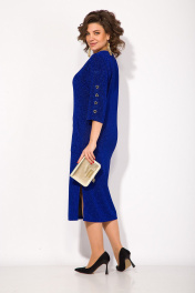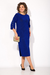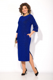 платье прямое из трикотажа с разрезом и эффектом мерцания Liliana 1392 электрик