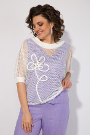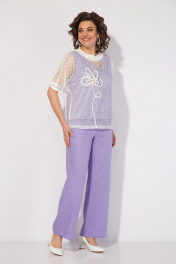 Комплект из льна с сетчатым топом и брюками Liliana 1410 лаванда+светлый