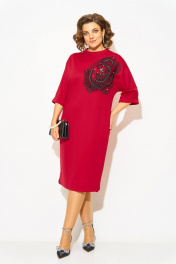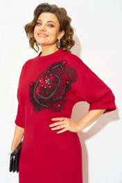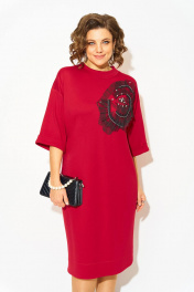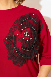 Очень лаконичное и стильное платье определённо привлечёт к себе внимание окружающих. Модель свободного «о»-образного силуэта. Левую часть плеча и груди украшает изысканная печать аппликация в виде цветка с декором из бусин и жемчуга. Платье с мягко лежащей стойкой у горловины. Рукав длиной ¾-ти, на притачной манжете на отворот. Модель слегка заужена к низу, с разно уровневым фигурным низом, оформленный обтачкой. В платье предусмотрены карманы. Ууниверсальность и неподвластный времени стиль этой модели позволяют создавать множество образов, дополняя его разнообразными аксессуарами. Оно идеально сочетает в себе комфорт, элегантность и актуальные модные тенденции. Длина по спинке – 106 см, рукав – 45-50 см.