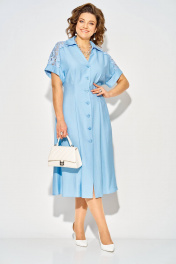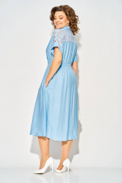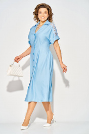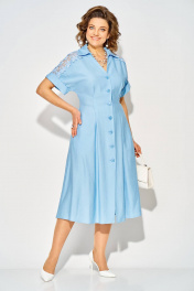 Эффектное весеннее летнее нарядное женское платье, выполнено из вискозного полотна со вставками из хлопкового кружева. Модель полуприталенного силуэта, с цельнокроеным спущенным рукавом и притачным манжетам по низу. Линия кокетки, переходящая на спинку оформлена вставкой из декоративного кружева. V-образный вырез горловины оформплен небольшим отложным воротником. Застежка – центральная на петли и пуговицы. По талии заложены декоративные складки. Спинка в области талии присборена на резинку, что обеспечивает более комфортное прилегание. В этом легком весенне-летнем платье вы будете выглядеть эффектно и привлекательно. Это идеальный вариант для отдыха на море, в отпуске и даже для свидания. Добавьте пару аксессуаров и превратите наряд в вечерний, для особых случаев. Длина по спинке – около 126 см, рукав – 30 см.