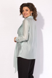 Элегантная женская блузка из шелка-вуали, сочетает в себе современные тенденции 2026 года с классическими акцентами. Подходит как для офиса, так и для особых случая, обеспечивая комфорт и уверенность. Модель полуприлегающего силуэта, с центральной застежкой на петли и пуговицы на планке. Воротник отложной, на стойке. Полочка декорирована имитацией жилетки с ассиметричным подрезом, с застежкой в петлю. Рукав вточной, длинный, на притачной манжете с прорешкой, застежка на 2 пуговки. Такой цвет цвет костюма подчеркнут вашу индивидуальность и хороший вкус. Независимо от того, выберите ли вы его для офиса или вечера, эта блуза станет верным спутником в создании вашего стильного образа как из пинтерест 2026 года. Длина по спинке – 70 см, рукав – 62 см.
