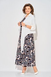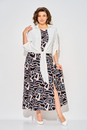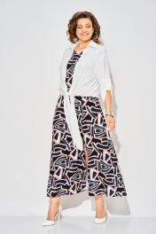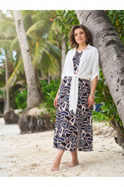 Платье женское с рубашкой маст хэв сезона 2026 в вашем гардеробе, создаст шикарный образ этой весной и летом. Платье хлопковое полуприталенного силуэта с тропическим принтом. Модель с продольными рельефами по полочке и спинке. Вырез горловины округлый. Рукав цельнокроеный слегка спущенный. По переду платья предусмотрены разрезы. Спинка с резинкой для более комфортного облегания. В комплекте к платью идет свободная рубашка с отложным воротником на стойке. Рукав длиной ¾-ти с застежкой на пате. По спинке предусмотрена кокетка с бантовой складкой. Рубашка без застежки, фиксируется завязкой по переду. Комплект двойка платье +рубашка - тренд в этом год. Это идеальный выбор для современной женщины, которая ценит комфорт, стиль и универсальность в себе! Длина платья – 130 см. Длина рубашки – 50 см, рукав – 50 см.