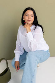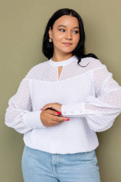 Классическая белая женская блузка с длинным рукавом наша новая разработанная модель на все случаи жизни, в которой Вы будете выглядеть стильно, легко и обворожительно, она подчеркнет утончённый вкус женщины и позволит создать поистине восхитительный образ. Свободная базовая блуза с длинным рукавом с рюшами идеальна для создания повседневных и офисных луков. На рукавах блузки декоративные пуговицы. По низу изделия имеется резинка. Имеется подкладка. Размерная сетка от 44 по 60 размер. Благодаря правильным лекалам блузки женские больших размеров будут гармонично сочетается под пиджак, с джинсами, классическими брюками и юбками. Нарядная блузка с округлым вырезом позволит в любой ситуации оставаться изысканной и элегантной. Рубашка белая женская нарядная создает визуально стройный силуэт. Сама модель блузки прямая.