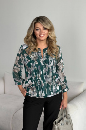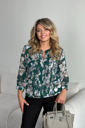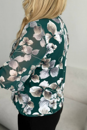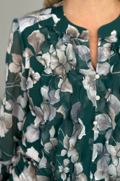 Роскошная блуза больших размеров с объемными рукавами LindaLux 483 изумрудные_цветы