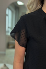 Блуза черная, из шифона с коротким рукавом LindaLux 812/1 черная_бубочка