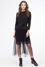 Демисезонное платье с двойной юбкой и кружевом Линия Л Б-1706 чёрный