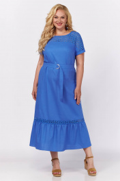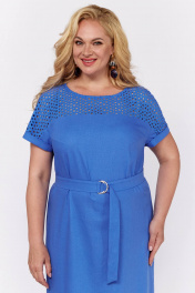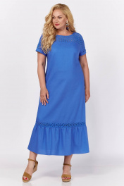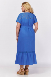 Женское натуральное льняное платье А-силуэта со вставками из хлопкового ришелье на рост 164см. Вырез горловины лодочка. Рукав цельнокроенный с отложной манжетой. Перед платья и спинка с кокетками. По переду нагрудные вытачки. По спинке талиевые вытачки. Низ платья с воланом на сборку и горизонтальной вставкой из ришелье. Платье дополнено поясом из основной ткани с фиксацией на полукольцах.
