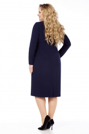 Текстильное женское платье полуприлегающего силуэта на рост 164см. Вырез горловины фигурный со стойкой. Рукав втачной длинный. Перед платья с нагрудными вытачками из проймы. Вставка из контрастной ткани с пуговицами. По спинке плечевые вытачки и средний шов со шлицей.