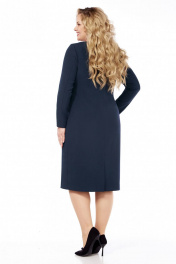 Текстильное женское платье полуприлегающего силуэта на рост 164см. Вырез горловины фигурный со стойкой. Рукав втачной длинный. Перед платья с нагрудными вытачками из проймы. Вставка из контрастной ткани с пуговицами. По спинке плечевые вытачки и средний шов со шлицей.