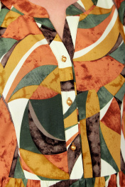Повседневное летнее платье женское из натуральной ткани на рост 164см. Выполнено из легкого штапеля с принтом, 100% вискоза. Силуэт платья расширен к низу. Вырез горловины фигурный. По талии горизонтальный подрез. Рукав втачной короткий. Застежка центральная на петли и пуговицы. По спинке кокетка