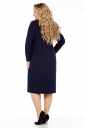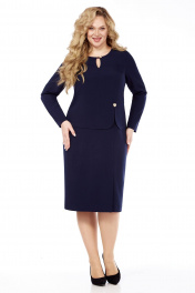 Текстильное женское платье полуприлегающего силуэта средней длины за колено на рост 164см. Вырез горловины фигурный с навесной петлёй и пуговицей. Рукав втачной длинный. Перед платья с нагрудными вытачками из проймы и вертикальным швом со шлицей. По спинке средний шов.