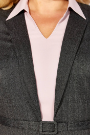 Повседневное текстильное дресс-код платье полуприлегающего силуэта на рост 164 см. Рукав втачной длинный. Вырез горловины V-образный, воротник рубашечный с отрезной стойкой. Перед платья с бочками и нагрудными вытачками. Спинка со средним швом и шлицей. По талии спереди вшит пояс с обтяжной пряжкой.