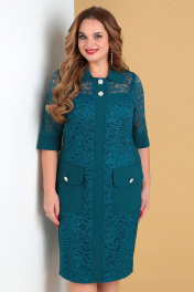 Платье выполнено из текстильной ткани с кружевом. Платье приталенного силуэта. В среднем шве спинки потайная молния. Ткань тянется. Длина платья по середине спинки: 106 см. Длина рукава: 38 см.