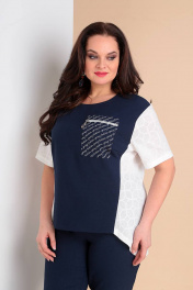 Брюки и блузон из текстиля с поясом на резинке Liona Style 678 синий