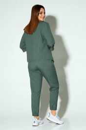 Комплект женский 3-х предметный: жакет, брюки и майка. Верхний край брюк на резинке, плюс шнур. Брюки по низу на манжете, по задним половинкам вставлена резинка. Длина жакета по середине спинки: 60 см. Длина рукава жакета: 42 см. Длина майки по середине спинки: 58 см. Длина рукава майки: 19 см. Длина брюк по боковому шву: 97 см.