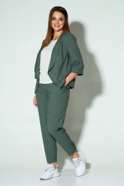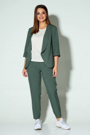 Жакет и брюки - лён 50%, нейлон 25%, вискоза 25%. Майка - вискоза 60%, полиэстер 37%, лайкра 3%.