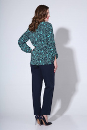 Комплект блуза и брюки с разрезами и съемным поясом Liona Style 811 бирюза/синий