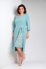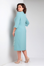 Платье полуприлегающее с V-образным вырезом из текстиля, бирюзовое Liona Style 896 лазурный