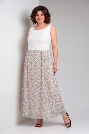 Бежевое и белое платье и жакет из льна с тонкой отделкой Liona Style 908 молочный