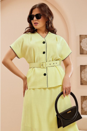 Дизайнерский костюм с контрастными кантами и съемным поясом Lissana 4649 желтый