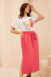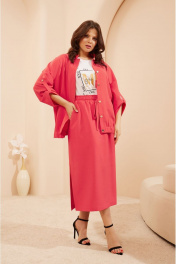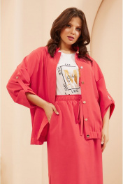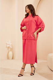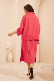 Casual костюм из текстиля с бомбером и юбкой-миди Lissana 4681 коралл